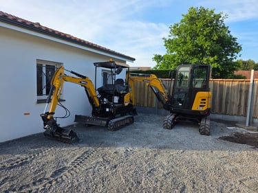 Préparation de terrain, nivellement, tranchées, aménagement extérieur.